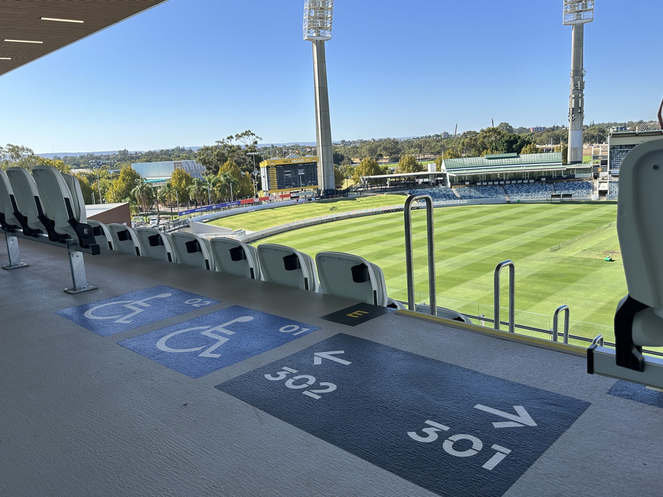 The WACA redevelopment also provided the perfect backdrop for a marketing photoshoot. Project Manager, Sheno, and Business Manager, Josie, joined the team on-site to capture the finished work. This is a vital part of the process. Documenting our great work ! It’s been exciting to be part of the regeneration of one of Perth’s most iconic sporting venues.