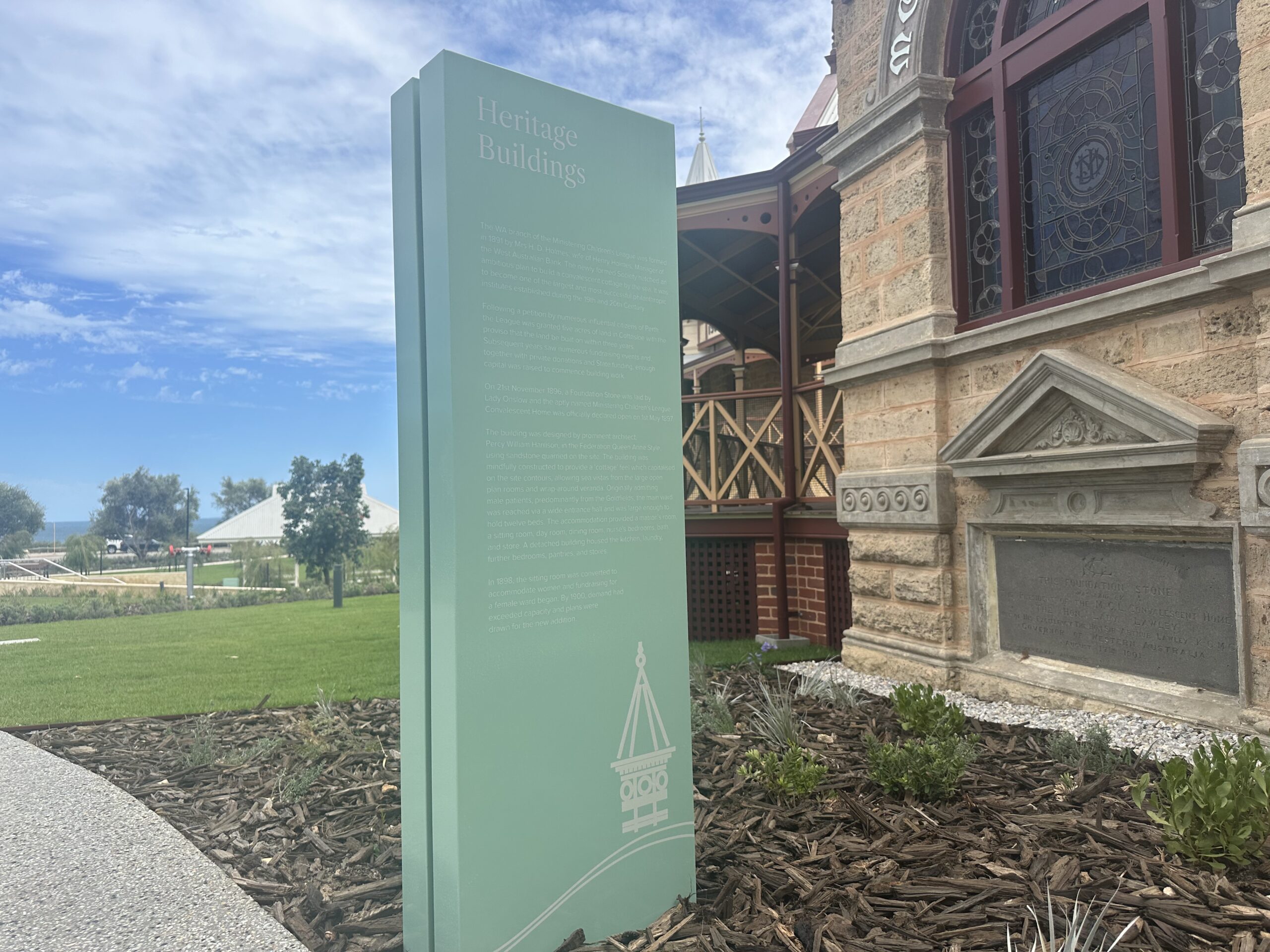 Signs & Lines has recently completed directional and interpretive signage for the newly revamped Wearne Cottesloe Aged Care redevelopment in Perth’s western suburbs. Contracted to Built, our team worked with a signage brief sympathetic to the existing heritage landmark and its refurbishment into an oceanside, aged care facility.