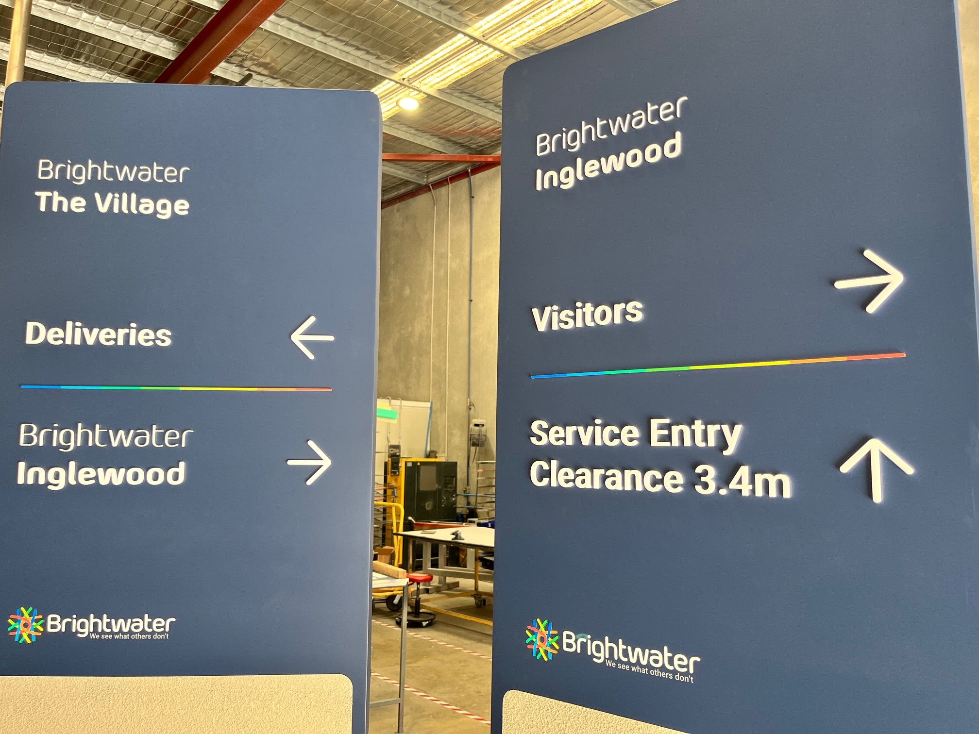 There are many benefits for keeping all the processes to create great signage under one roof. Our in-house services which happen in our Midvale offices and factory for this Brightwater project included:-