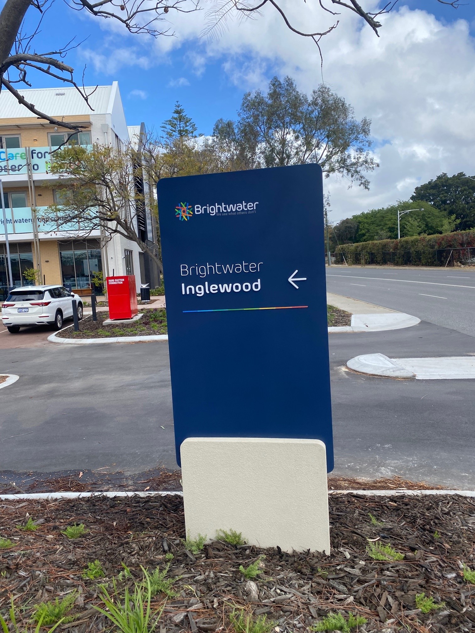 The external signage was commissioned for Brightwater’s facility in WA. Located in Inglewood, ‘Brightwater The Village’ has been designed specifically for people living with dementia.