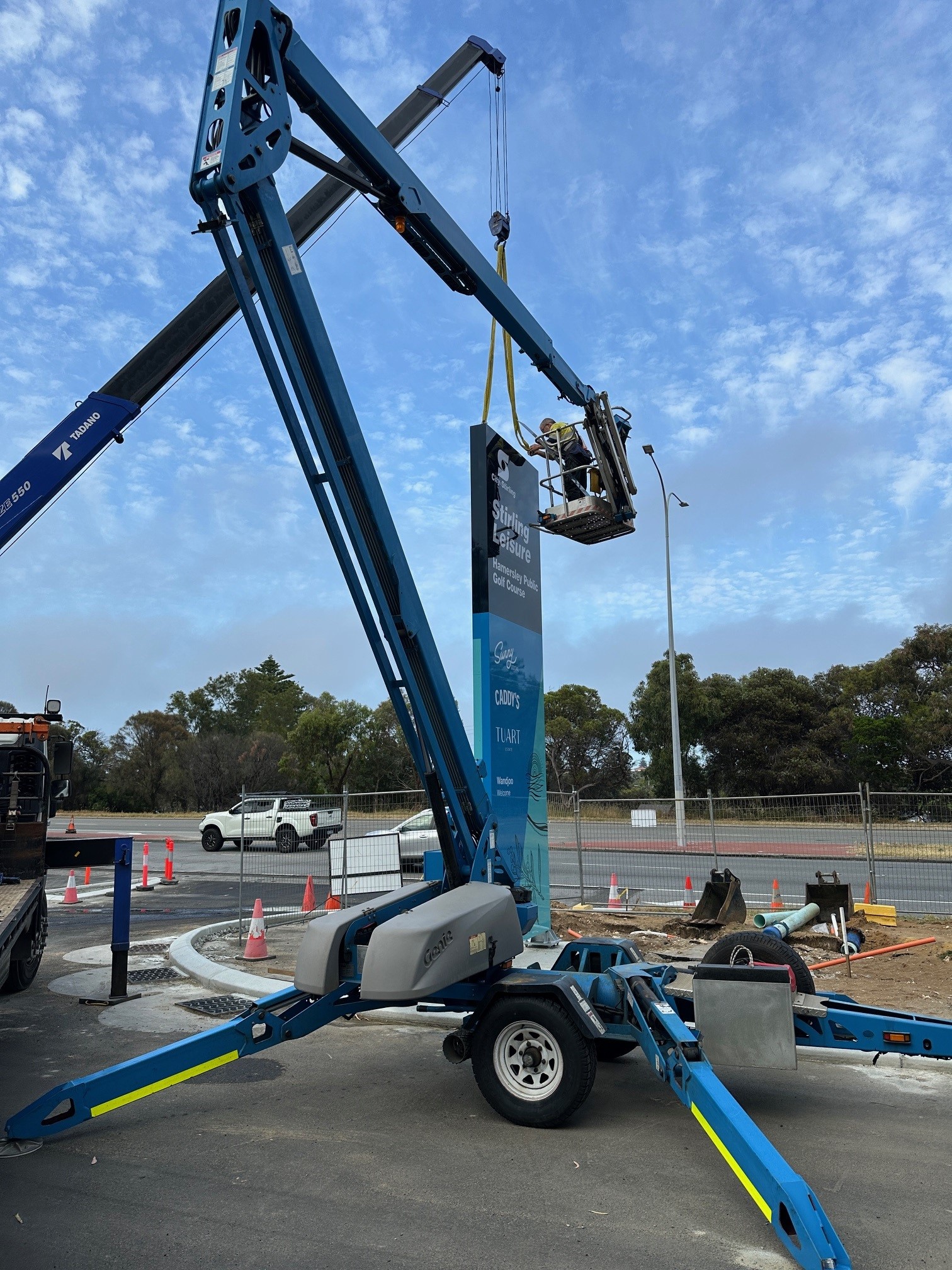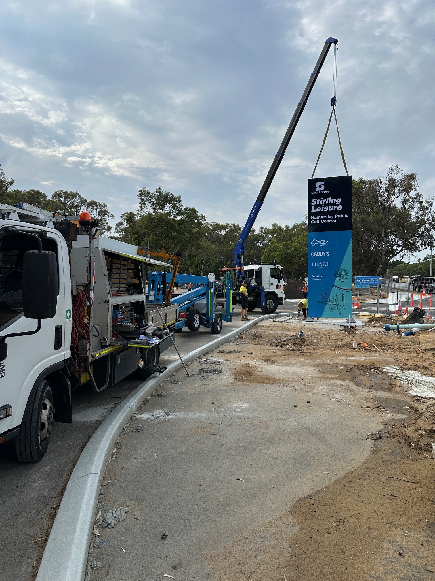 Our site team facilitated the City of Stirling pylon sign lift into position and electrical commissioning. Minimising site time is always our goal – this helps to keep the risks to others to a minimum.