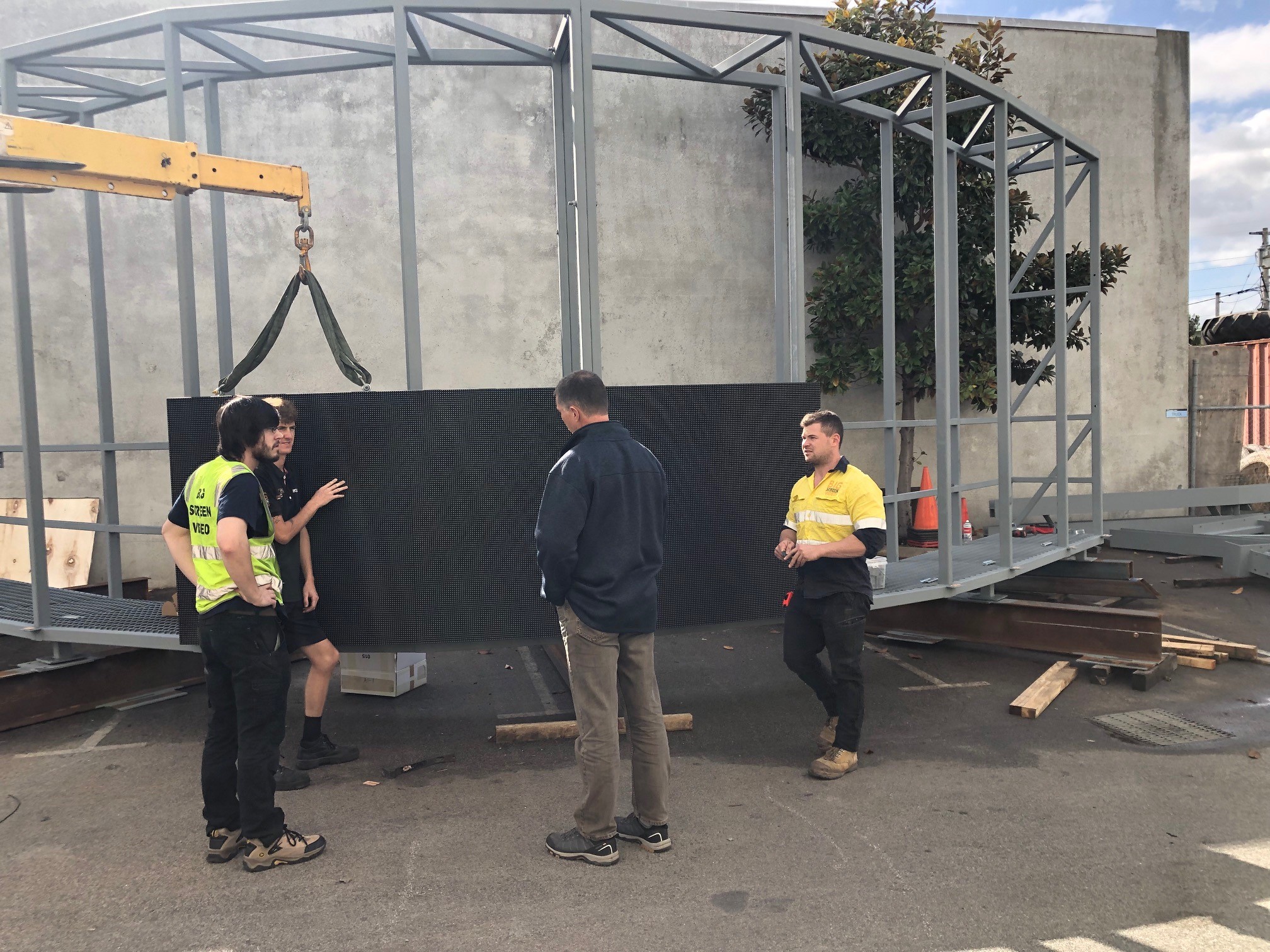The initial works included removal of an existing static billboard. A crane was used to dismantle the frames of the old sign and hiabs transported the dismembered signs to a waste facility.