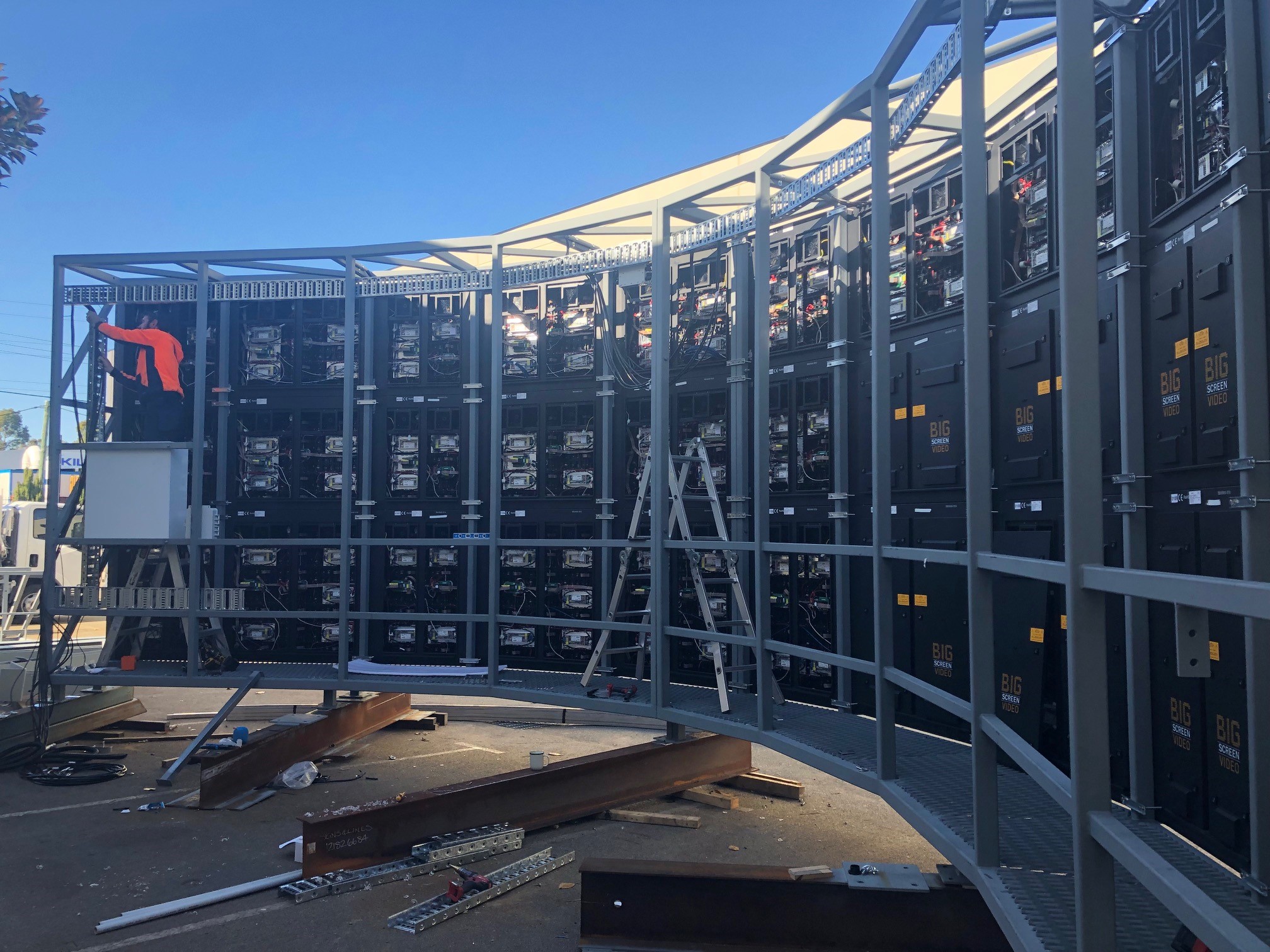 The initial works included removal of an existing static billboard. A crane was used to dismantle the frames of the old sign and hiabs transported the dismembered signs to a waste facility.