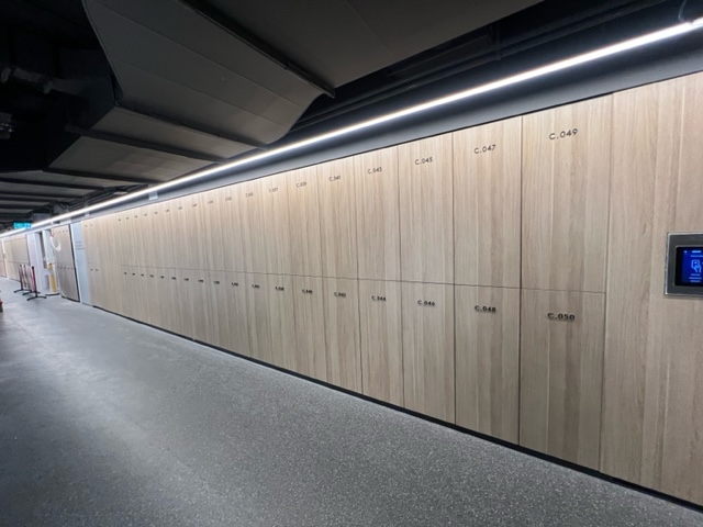 End-of-trip facilities (EOTF) are amenities that support people who walk, jog or cycle to work, or those who take exercise during their lunch or break times. They are usually located in central areas like offices, public transport hubs, and commercial buildings. For this end of trip signage was required to be design, manufactured and installed into the basement 2 area. The new signage connects five key areas – the lift lobby, two bike stores, the amenities areas, accessible facilities and buiding exit onto street level. Wayfinding for both the pedestrian user journey and the cyclist user journey was considered as part of the planning.