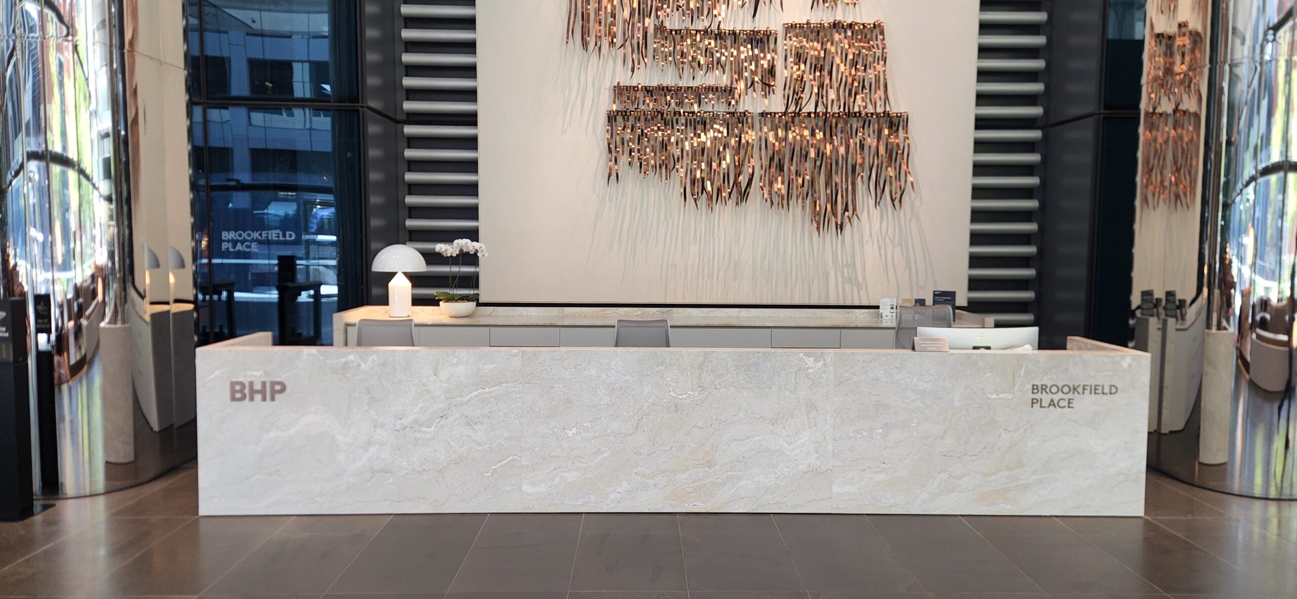- Concierge desk – installed Rimex lettering in copper directly to face of concierge desk.