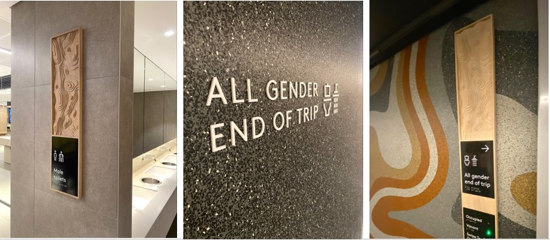 Brookfield Place is one of Australia’s most awarded properties. It’s also the second tallest building in Perth, standing at over 234 meters. Signs & Lines work at Brookfield Place in 2024 featured a major upgrade to the end of trip signage – aka EOT signage. The office building can accommodate more than 5,000 people so with the key drivers being a safe, healthy and productive space, the recent refurbishment of the EOT areas was an important part of the revamp.