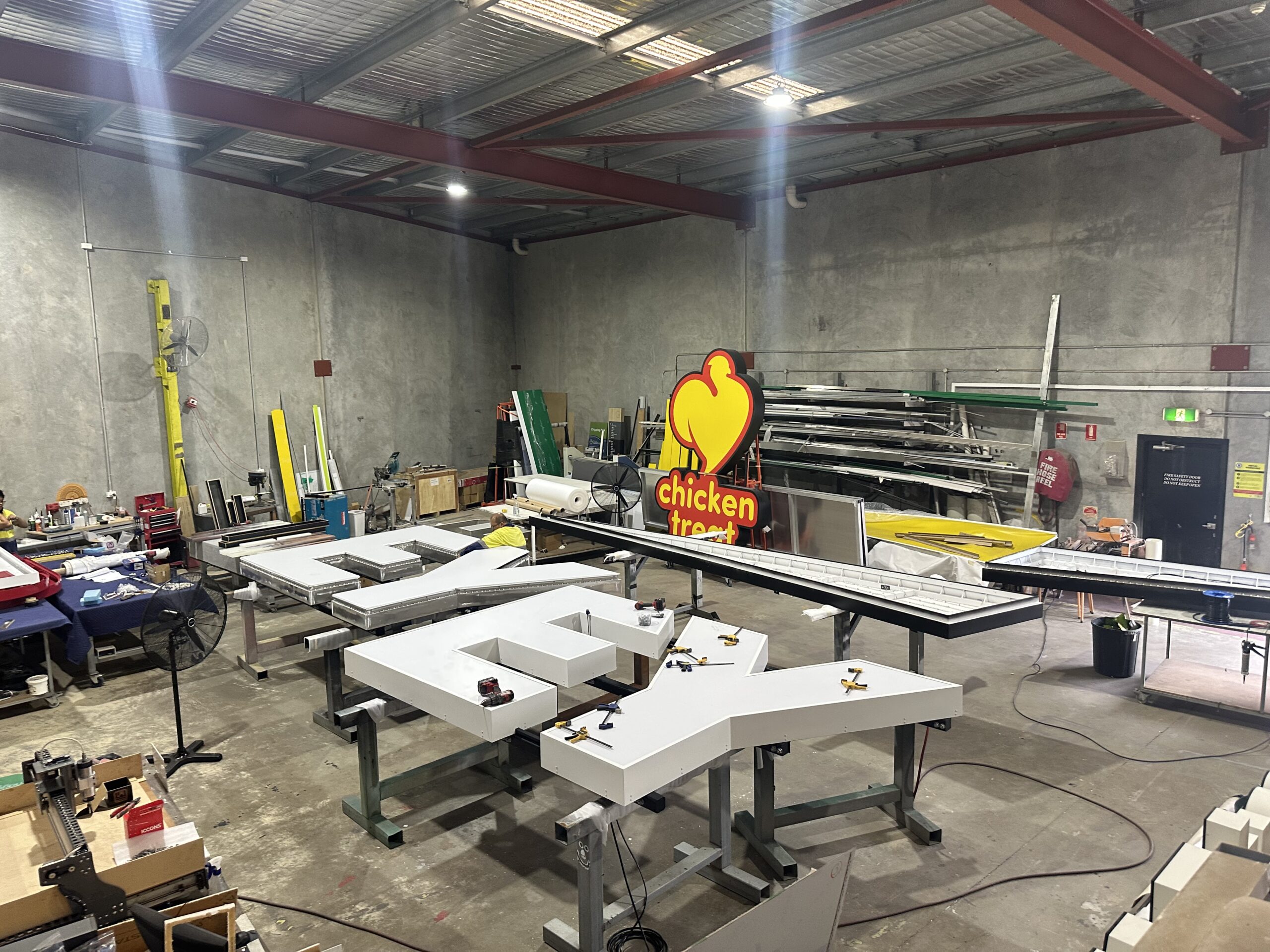 The EY 3D fabrication of the letters and beam commenced in our Midvale factory in late 2024. The project used the full talents of our design team, metal fabricators, routing area, spraypainting, LED and assembly departments. As the photos below reveal, this is a complicated process requiring skill and precision. Thankfully our team are adept in 3D letter making. Despite the scale of the works, we produced two sets of the letters and beam ready for installation in February 2025.