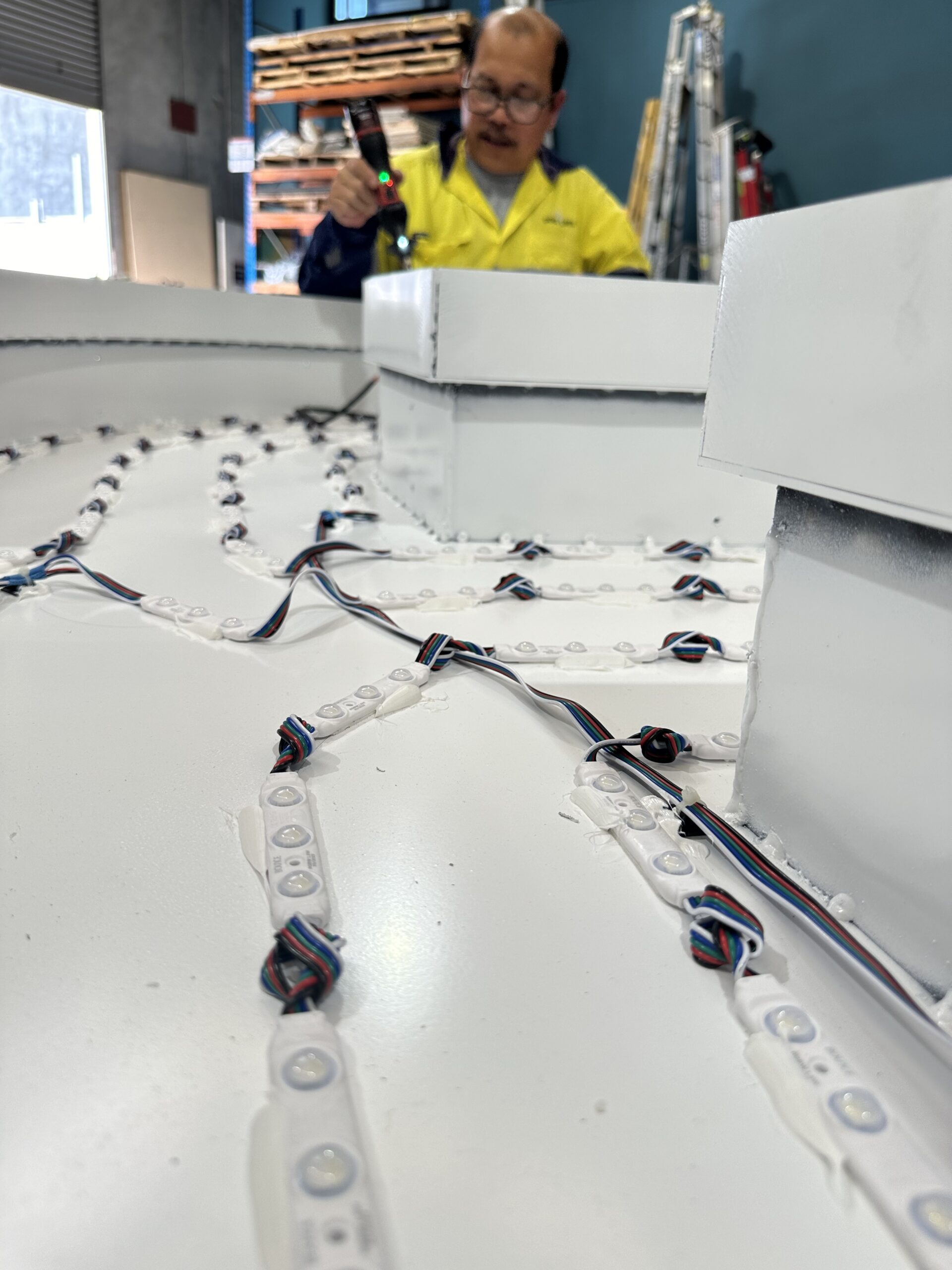 A cacophony of colours and shades were popping up as we performed critical LED tests in the factory this week. The result – letters lit to perfection!