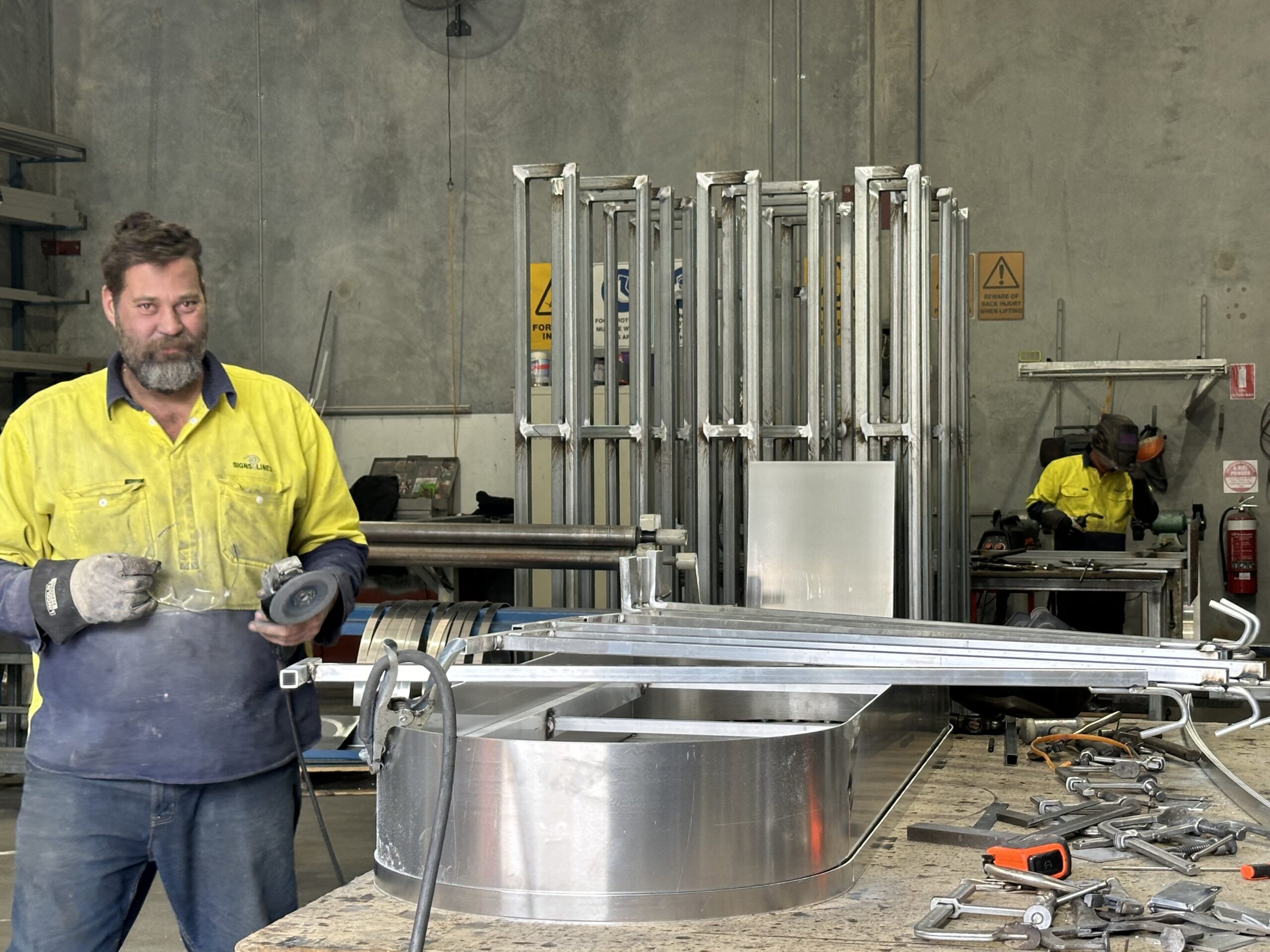 For all the glitz and glamour of the dazzling LED’s, illuminated fabricated letters involve a lot of careful planning, design and detailing. Our design department meticulously create to scale drawings of each fabricated element. The design intent is then scrutineered by qualified engineers to ensure compliance and build suitability. They will also review location or environmental factors that may impact on the signage once installed. Once approved, the team createmeticulous construction drawings and our fabrication team swing into action. No letter too large, no logo too complicated, no shape too tricky. With millimetre precision the metal fab team craft out of aliminium, steel and stainless.