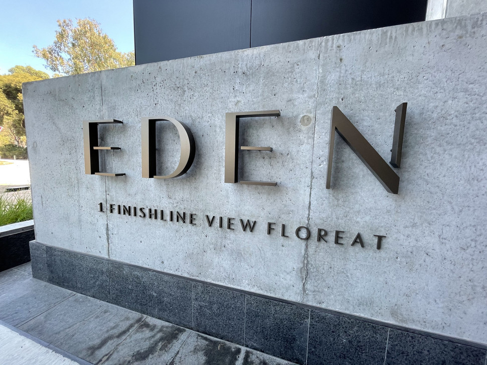 - Firstly, Eden Apartments – featuring some beautiful external entry statements and 3D lettering. We worked with Hillam Architects and Edge Visionary Living for the Eden West apartments – the first stage of the two development project completed in early 2021. Signs & Lines worked with Hillam to propose design concept artwork for the signage package – using our creative and practical knowledge of signage to develop custom, innovative solutions. Read our Case Study here;