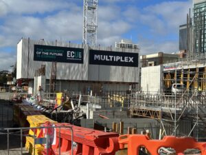 Jump-form signage is about scale and presence on the building itself. At ECU City Campus, two jump-form signs span 10m x 6m, rising with the structure as each level is poured. They stay in place for the duration of the build, delivering continuous, high-impact branding on the formwork as the project climbs.