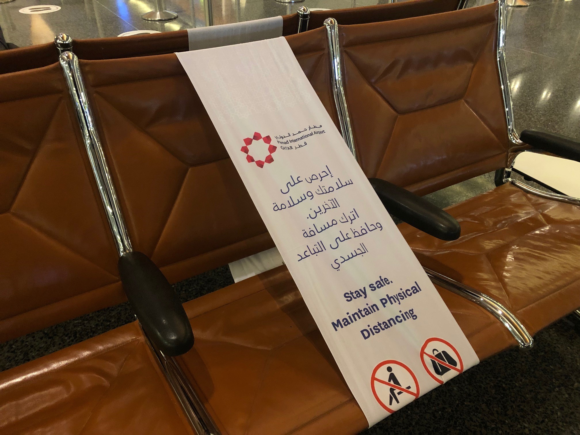 Thirdly, material signs placed on every other chair in waiting rooms/lounges to ensure that physical distances are observed.