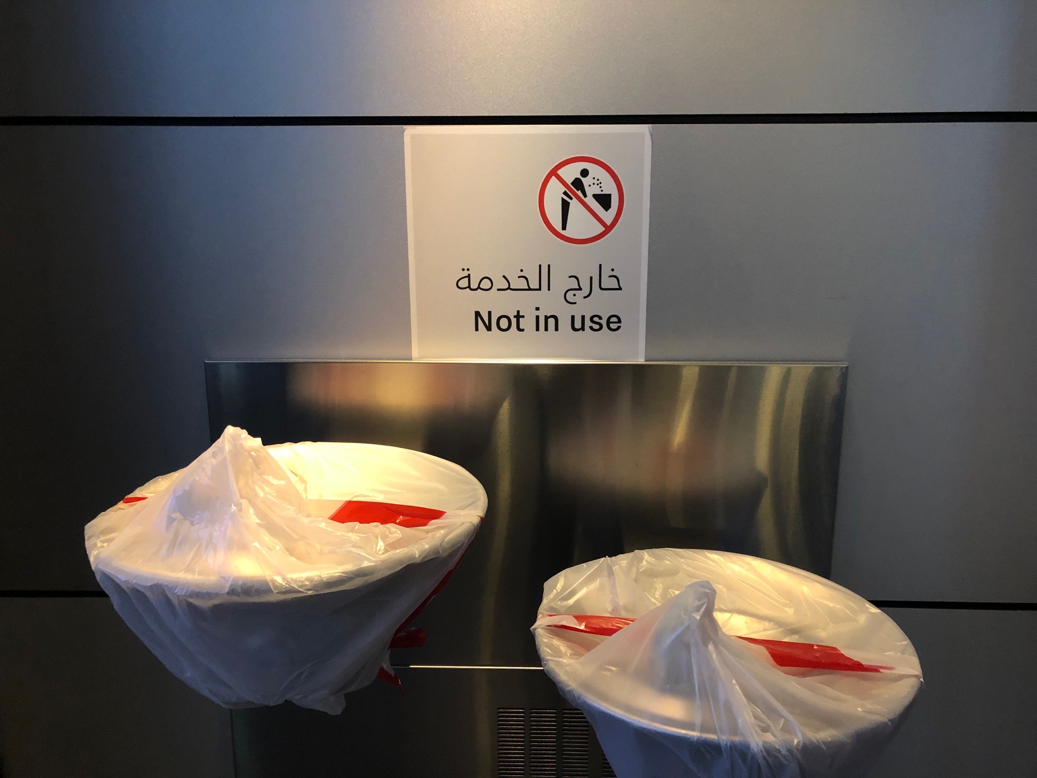 Secondly, look at the water fountains in Doha’s airport – closed and covered over with explanatory signage.